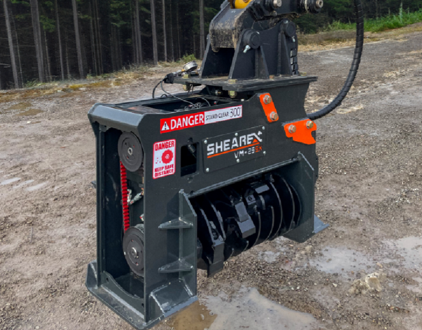 O SHEAREX VM-25SK é um acessório florestal projetado para escavadeiras, especialmente na faixa de 5 a 8 toneladas (11.000 a 18.000 lbs). Ele foi desenvolvido para manutenção eficiente de estradas, limpeza de terrenos e manejo de sub-bosque. Seus principais recursos incluem largura de corte de 27,5 polegadas, 9 lâminas do rotor e o Sistema de Proteção CONVEX DX™ para maior durabilidade. É adaptável, com opções de dentes ou lâminas de carboneto e sistemas de inclinação/garfo.